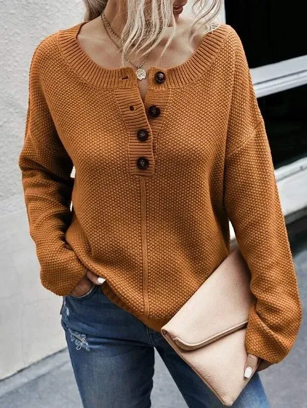 Half Button Drop Shoulder Sweater